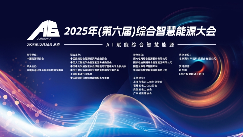 为深入贯彻落实科技创新驱动产业升级、助力能源转型的发展要求,践行能源安全新战略,2025年12月26日,在中国能源研究会的指导下,由中国能源研究会能源互联网专业委员会牵头主办,多家A6合作机制单位联合主办,2025年(第六届)综合智慧能源大会在京成功召开。
