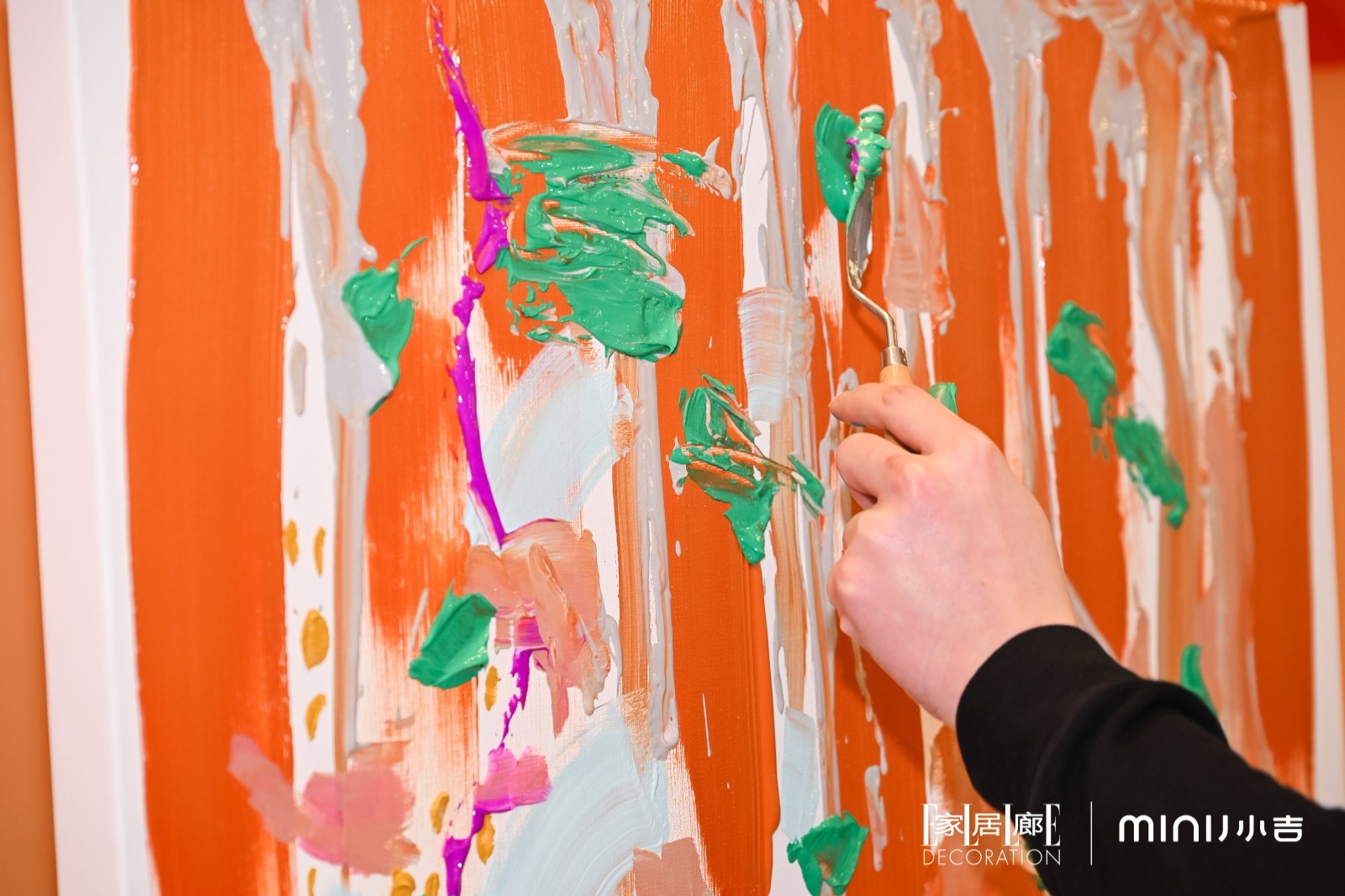 展览期间特别策划设计师沙龙环节,邀请与品牌“新复古美学”契合的多元圈层设计师参与“共生之美”艺术画作共创。其中品牌联名主创、跨界艺术家王令尘(Oscar Wang)亲临现场,与众多设计师们一同大胆施展创意想象,在画布上自由挥洒灵感——线条间流淌着MINIJ小吉标志性的经典圆润R角设计语言,色彩中跃动着汲取敦煌灵感的烤漆配色美学。